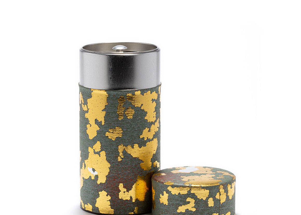 PEPITESU - Boîte à thé papier washi vert et or 150g