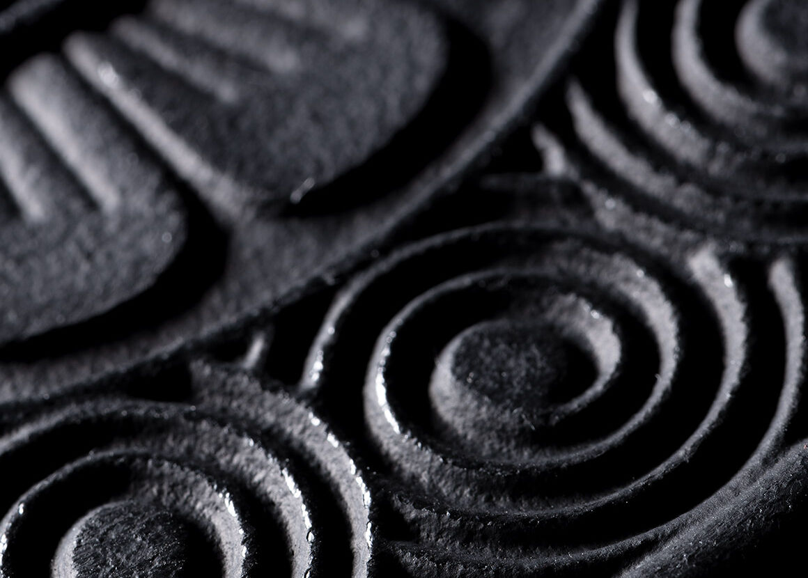 Repose-théière rond réalisé en fonte noire et au décor géométrique à la finition mate. Il comporte trois pieds habillés de silicone pour une meilleure stabilité et garantir la protection de votre table. Ø 13.5 cm - Il convient à toute les types de théières en fonte.