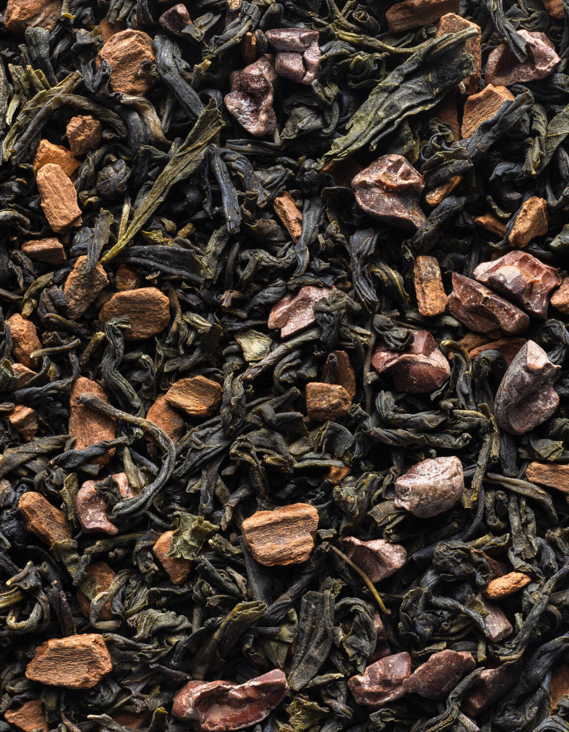 Le parfum délicat de fleurs blanches du thé au jasmin laisse deviner des accents animaux en rémanence. Ce sont ces notes enivrantes et chaleureuses que la cannelle et le cacao viennent soutenir. La tasse est suave et poudrée.