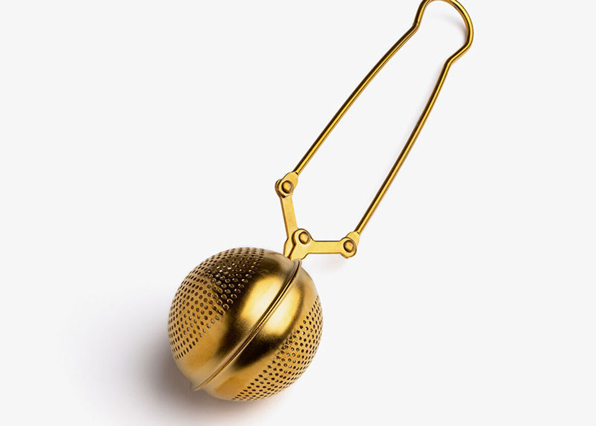 Infusore rotondo a pinza in acciaio inox traforato - finitura oro titanio