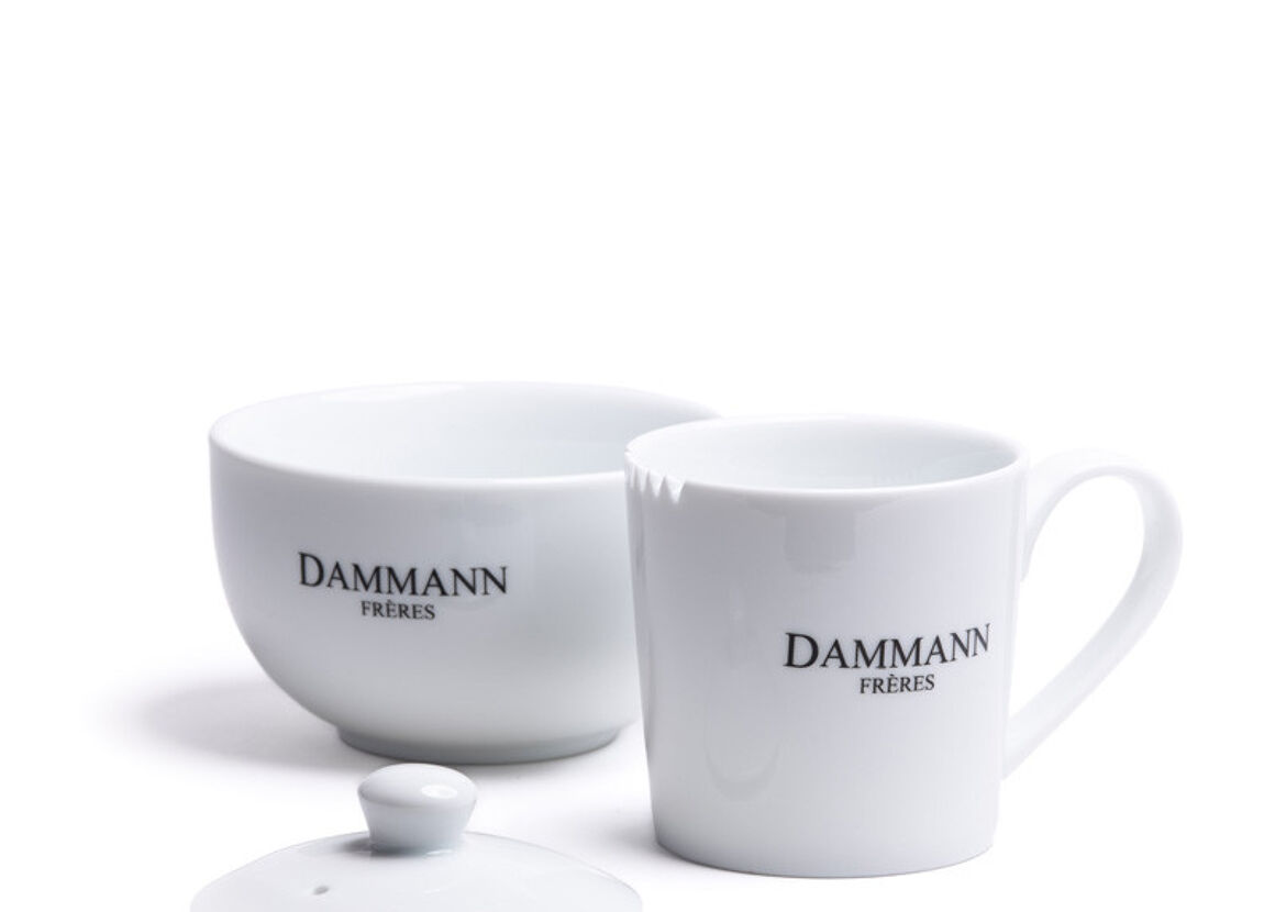 Il set da degustazione Dammann Frères è composto da 3 pezzi in porcellana bianca. Contiene una ciotola, una tazza dentellata e il suo coperchio.